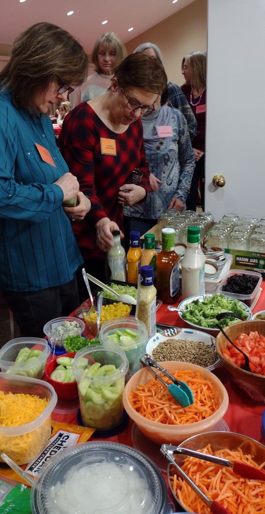 Our February meeting offered useful heart health information and a nice salad-in-a-jar takeaway. Thanks to our speaker, Denise Kerr, RN, for an insightful discussion of the dos and don’ts of cardiac health, to Betty Nolan for the salad in a jar idea, along with her donation of mason jars, and to everyone who shared ingredients for our salad bar.