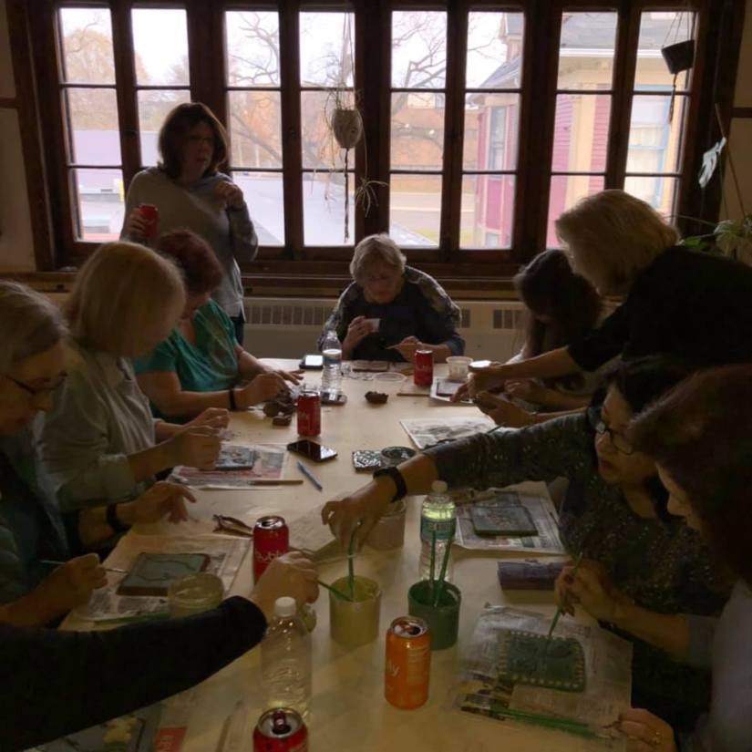 A nice turnout for a Saturday workshop in downtown Detroit. Everyone was able to tour the facility, a Detroit treasure, and make a unique tile. Thanks to Michelle’s daughter, a student at the Pewabic Pottery studio, for picking up the tiles after they were kiln fired and getting them back to our members at the following General Meeting.