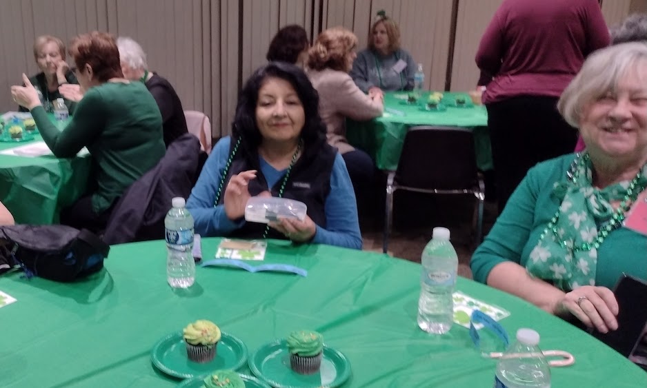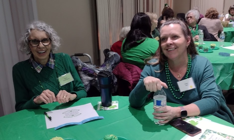 In anticipation of Spring and St. Patrick’s Day, green was the color of the day at our March 6th Meeting. Dave Galli from the Detroit Institute of the Arts, our featured speaker, took us on a nature hike through art and history, explaining how plants and animals play into what artists try to express in their work. Thanks to Nancy Ellenberger (pictured with guest Dave Gilli) for arranging this most enjoyable presentation. The meeting ended with some traditional Irish blessings to ensure everyone returned home safely.