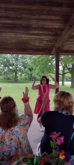 Some of the highlights from the event: Connie and Janet announced that we raised $5400 for our local Special Olympics teams this past year, Michelle gave us a hula lesson, drawing on her early days as a dancer, and everyone enjoyed the bountiful and delicious potluck dishes.