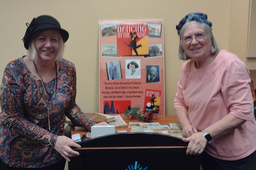 Author Susan Sage joined us for a discussion of her latest novel, Dancing in the Ring, a historical fiction set in Detroit during the 1920s and 1930s. Sage based the story on her own family history and talked about how the book came to be. It brought back many memories for those of us from the Detroit area. Our thanks to Betty for all she did to make this author visit happen. Here are a few pictures from the event that took place at the Canton Community Library.